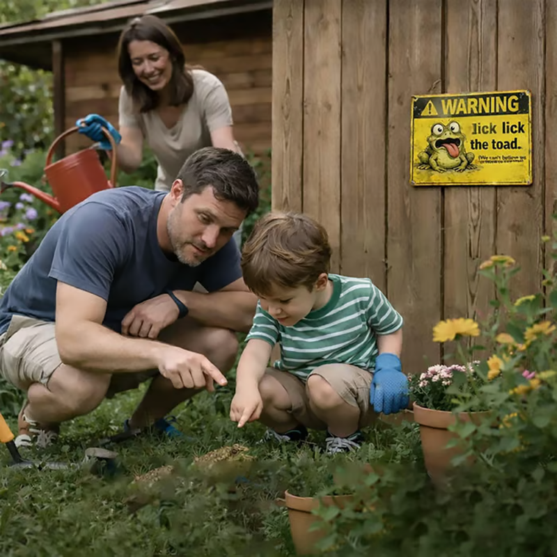 HUMOROUS & UNIQUE DESIGN - Featuring a funny "Don't lick the toad" message, this sign is a guaranteed conversation starter. It adds a quirky and lighthearted personality to any room, garden, or patio area.